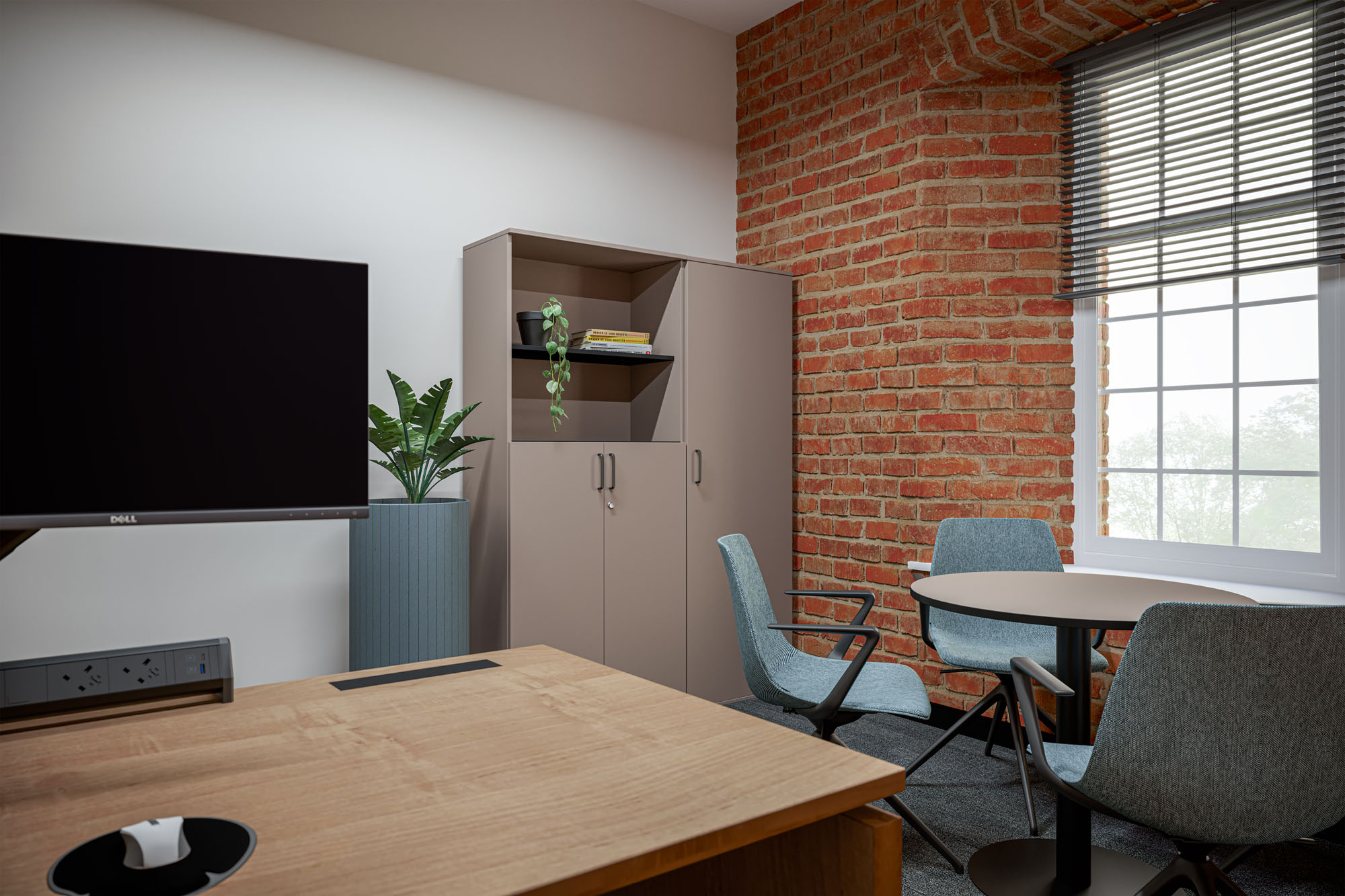 To cater to different meeting needs, we created private offices, a spacious boardroom for larger gatherings, and a smaller meeting room for occasional use. This division of spaces ensured privacy where needed and provided flexibility for different types of collaboration.