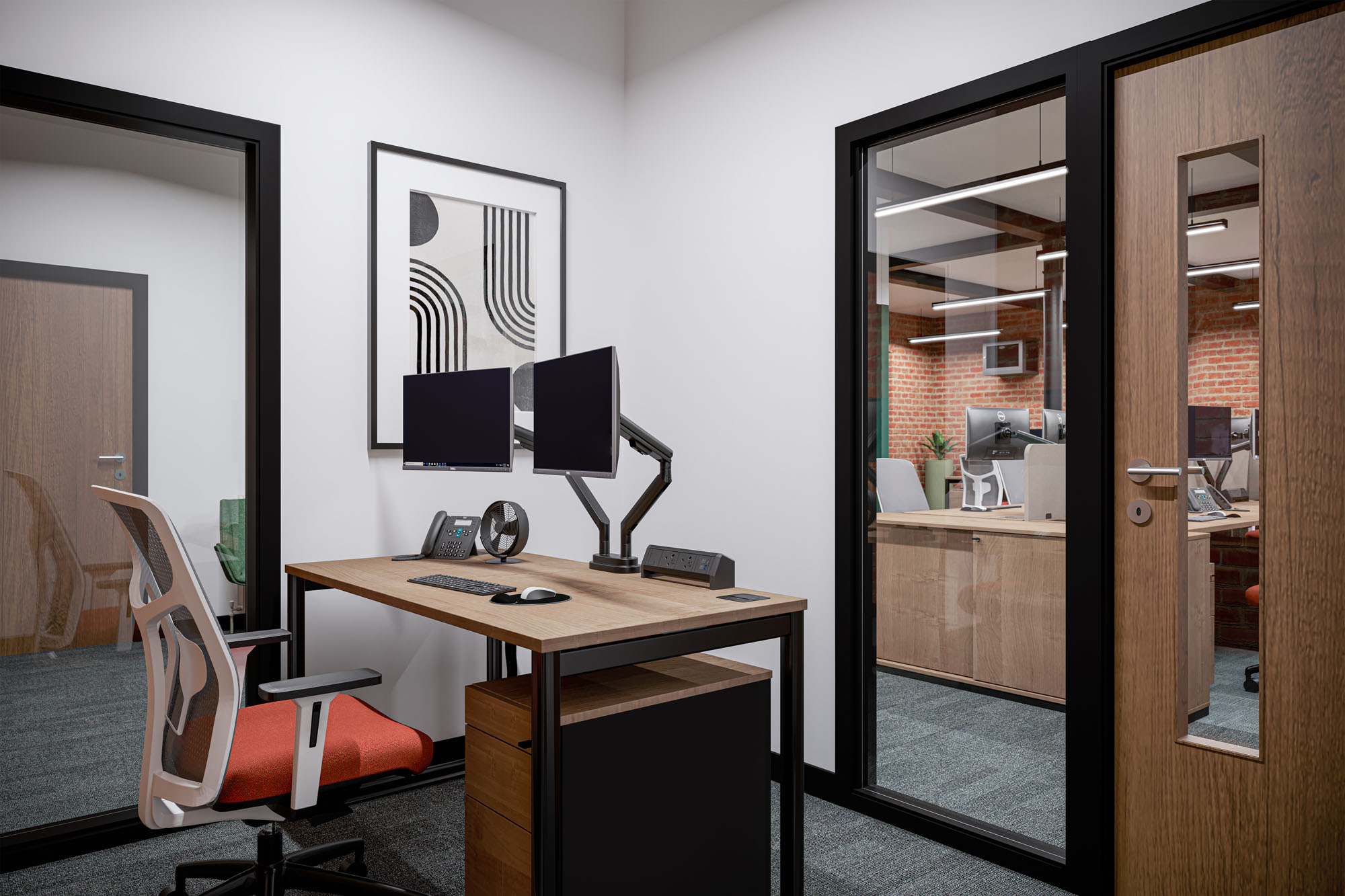 The challenge was to create a cohesive, functional layout within the constraints of the existing structure, a listed building with striking red brick walls and steel beams. Our goal was to create a design that respected these original elements whilst making a more conducive work environment.