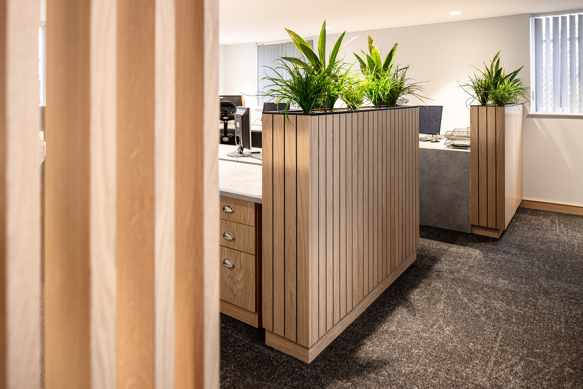 As space was limited, we needed to be clever with storage solutions. A key feature was the multifunctional planters which not only introduced greenery to the office but incorporated hidden storage. This dual-purpose design enhanced functionality without taking up additional space.