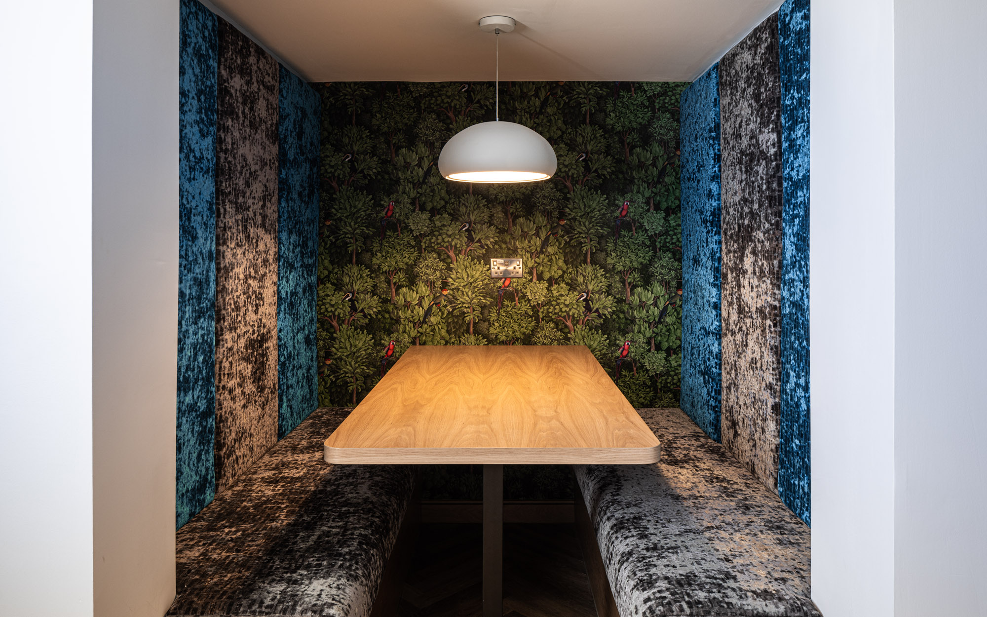 To achieve the right balance between openness and privacy in the office design, we incorporated several key features. A glazed boardroom maintains visual connectivity while ensuring privacy for confidential meetings. Wood slat panelling subtly zones the area, preserving the open feel. Additionally, a quiet alcove serves as a peaceful retreat for staff, enhancing well-being and productivity.